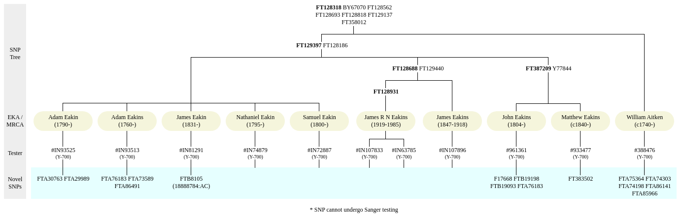 The following table is simply a bare summary of the results and can be copied and pasted into a spreadsheet. This is helpful for keeping track of larger projects. With the exception of those indicated by an asterisk, the novel SNPs (novel variants) can be tested at YSEQ.net for $18 each and a one-time kit fee of $6 for the first order.