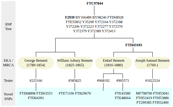 The following table is simply a bare summary of the results and can be copied and pasted into a spreadsheet. This is helpful for keeping track of larger projects. With the exception of those indicated by an asterisk, the novel SNPs (novel variants) can be tested at YSEQ.net for $18 each and a one-time kit fee of $6 for the first order.