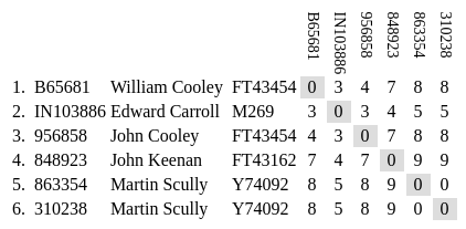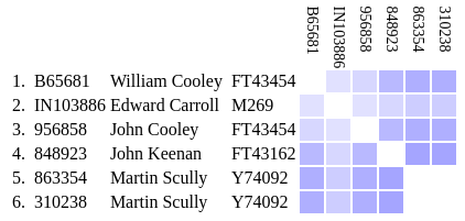 The color version results from replacing the numeric values with color values. This doesn't tell us much for small groups but can be informative for groups of ten and more.