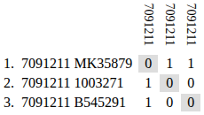 Here we compare the genetic distance between each tester rather than to the modal. This gives us a better idea as to how closely the testers are related to one another as opposed each to the modal, or mutual ancestor. The results tend to clump together by haplogroup. However, due to the volatile nature of STRs, the clumping is often inconsistent, as shown by the same graphics in the somewhat larger YP4248 Subclade Project. For this reason, STRs are unreliable for phylogeny. Nevertheless, the study can help direct us toward those kits that could provide the greatest impact on the project for Big Y upgrades.